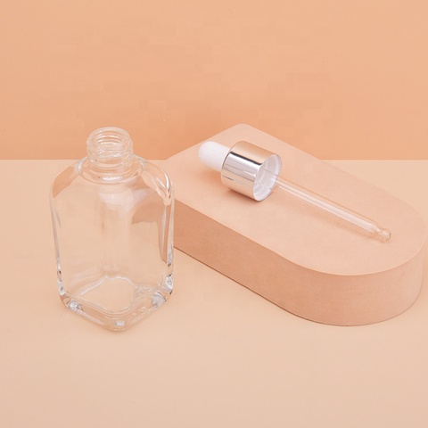 Thủy tinh trong suốt Chai nhỏ giọt cho chăm sóc da huyết thanh Lotion Kem bao bì với màn hình in ấn bán buôn